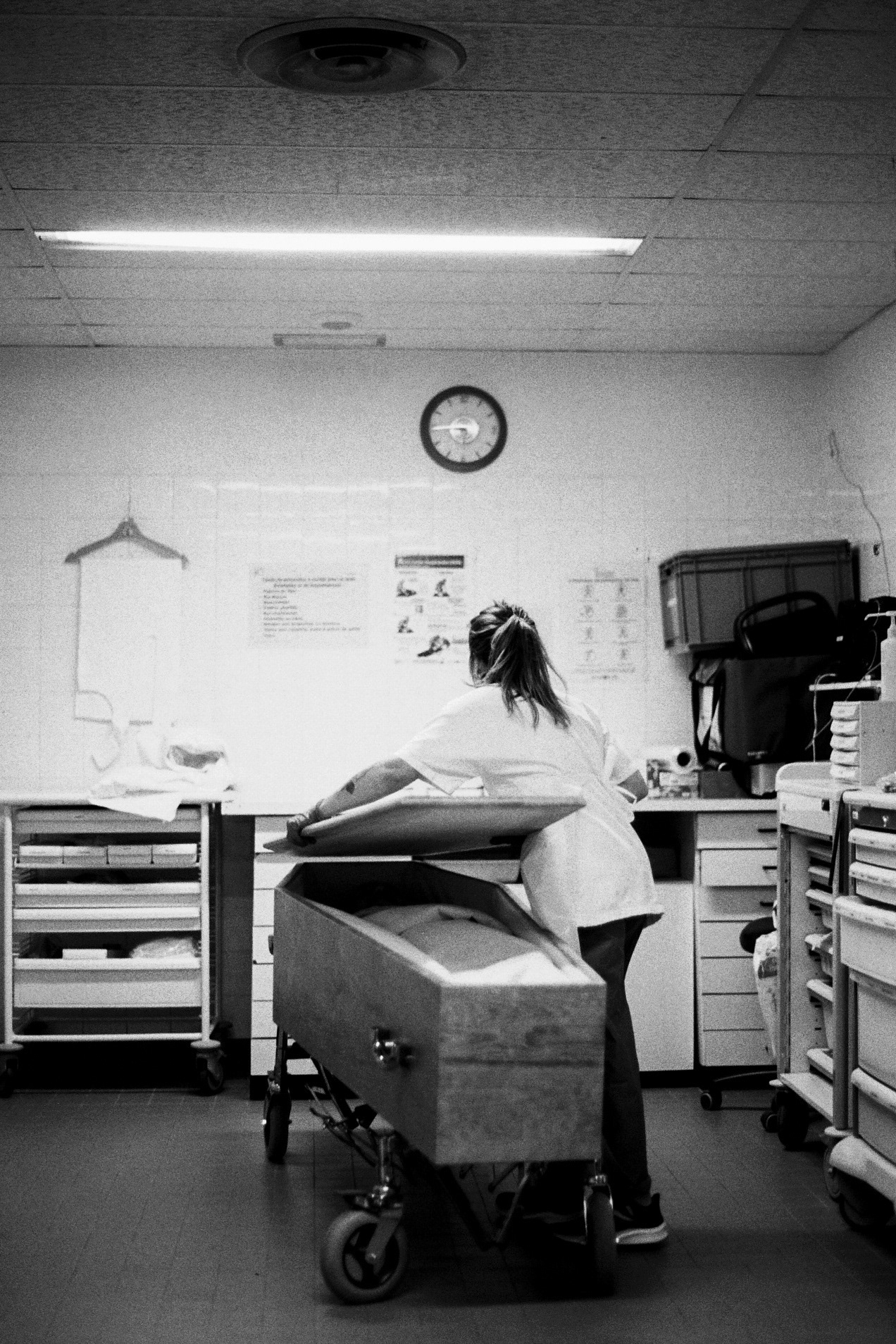 Par cette série photographique, j'essaie modestement de mettre en lumière un pan méconnu des soins en France, à travers le quotidien de ces soignants de l’ombre. Dans un souci de respect envers les défunts et leurs familles j'ai opté pour un rendu sobre, avec la volonté de faire évoluer les mentalités sur cette dernière étape de la vie.